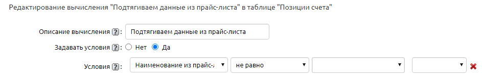 Настройки вычисления выглядят таким образом: