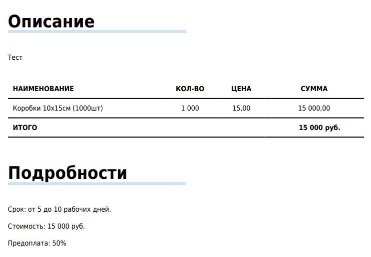 Например, нужно сохранить в отдельное поле коммерческое предложение с возможностью задать параметры, которые будут отображены в документе.